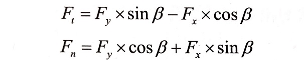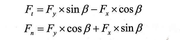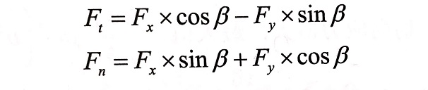為了研究方便,昌利將作用力的合力簡(jiǎn)化合成一對(duì)力,分解為水平力Fx和垂直力F,或分解為切向力F和反向力Fn。